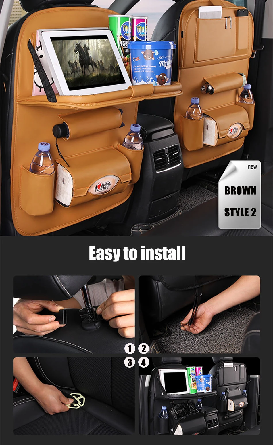 1PC PU Leather Car Seat Back Storage Hang Bag 2020 Multi-functional Mini Holder Universal Back Seat Organizer